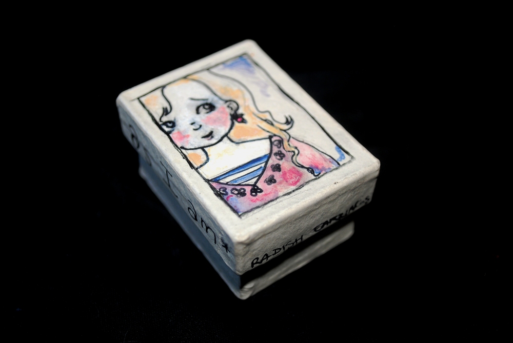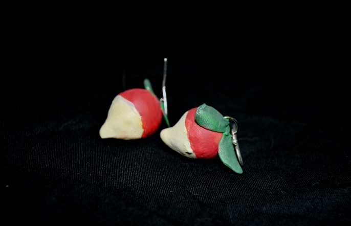 Polymer clay radish earrings based off of Luna Lovegood's handmade ones. Comes in a hand-painted Luna box.